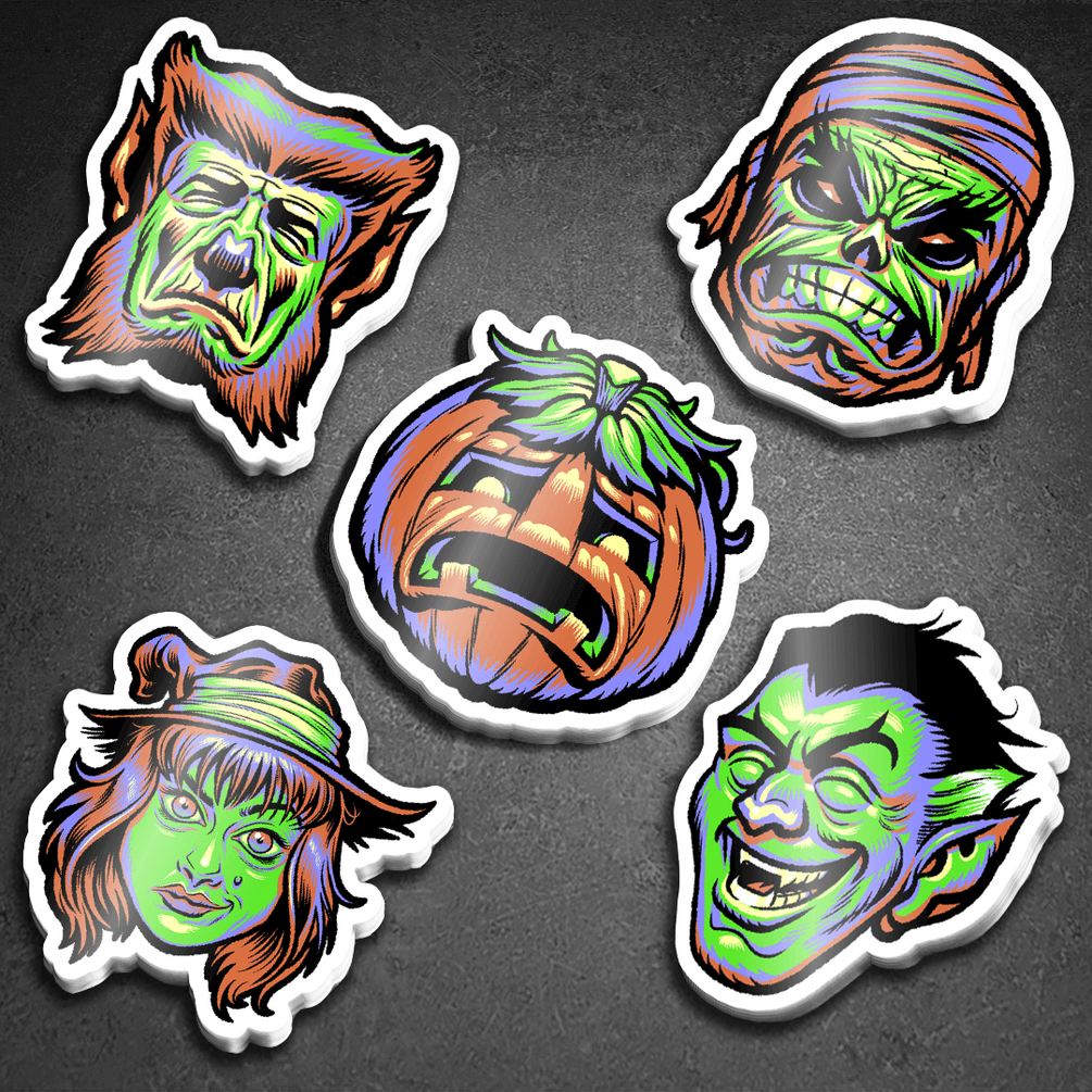 The MONSTER MASH sticker pack contains five 3" stickers for the price of FOUR. You would be the monster if you passed up this deal.